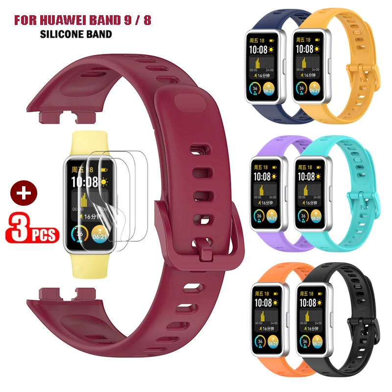 For Huawei Band 10 / 9 / 8 2in1 Silicone Strap Band + 3PCS Anti-scratch HD Screen Protector