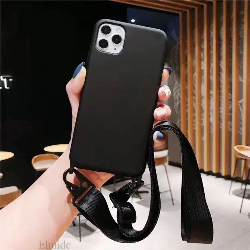 Crossbody Strap Lanyard Silicone Phone Case For iPhone 16 15 14 13 12 Mini 11 Pro Max Plus Candy Color Soft TPU Back Cover