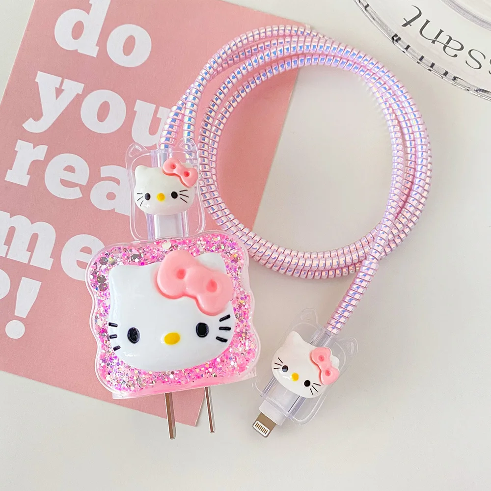 Cartoon Cable Winder Cellphone Charger Protective Case Sleeve for Apple IPhone 18/20W Hello Kitty Cable Winder Wire Protectors