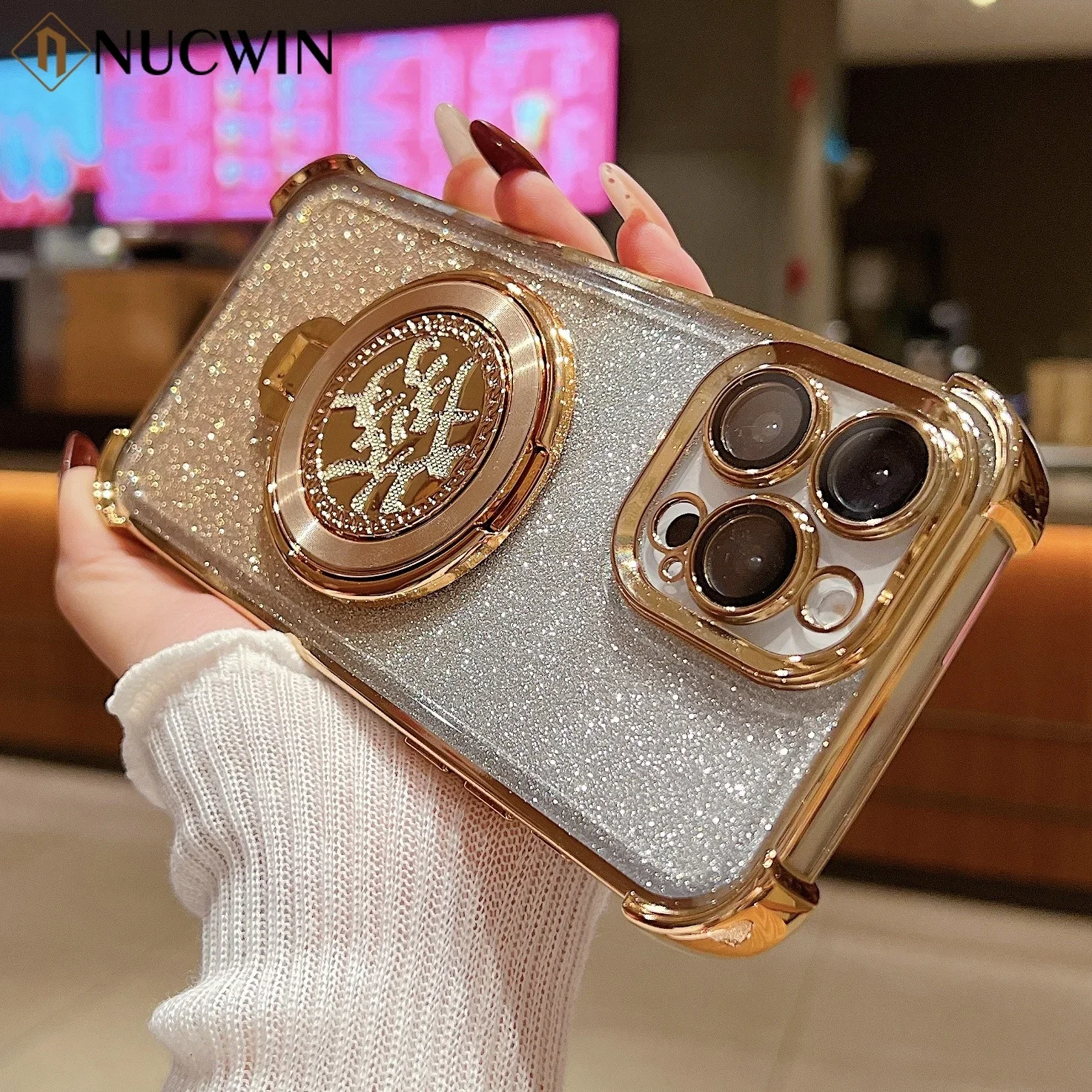 Wealth Gyro Mount Bracket Case For iPhone 17 16 15 14 13 12 11 Pro Max Plus Fashion Ring Holder Magnetic Shockproof Soft Cover