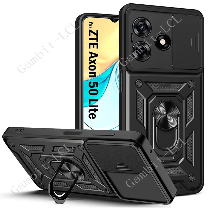 Anti-Falling For ZTE Axon 50 Lite Blade V50 Design Smart A73 4G Case Ring Armor Magnetic Holder Stand Slide Camera Lens Cover