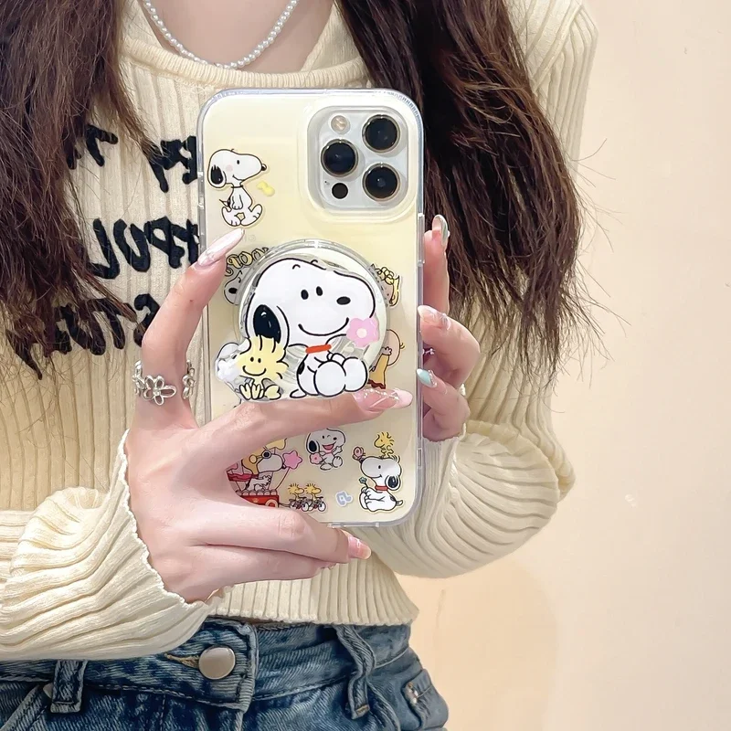 Cute Cartoon Snoopy Charlie Brown Magnetic Holder Magsafe Wireless Charge Phone Case For iPhone 15 14 13 12 11 Pro Max Cover