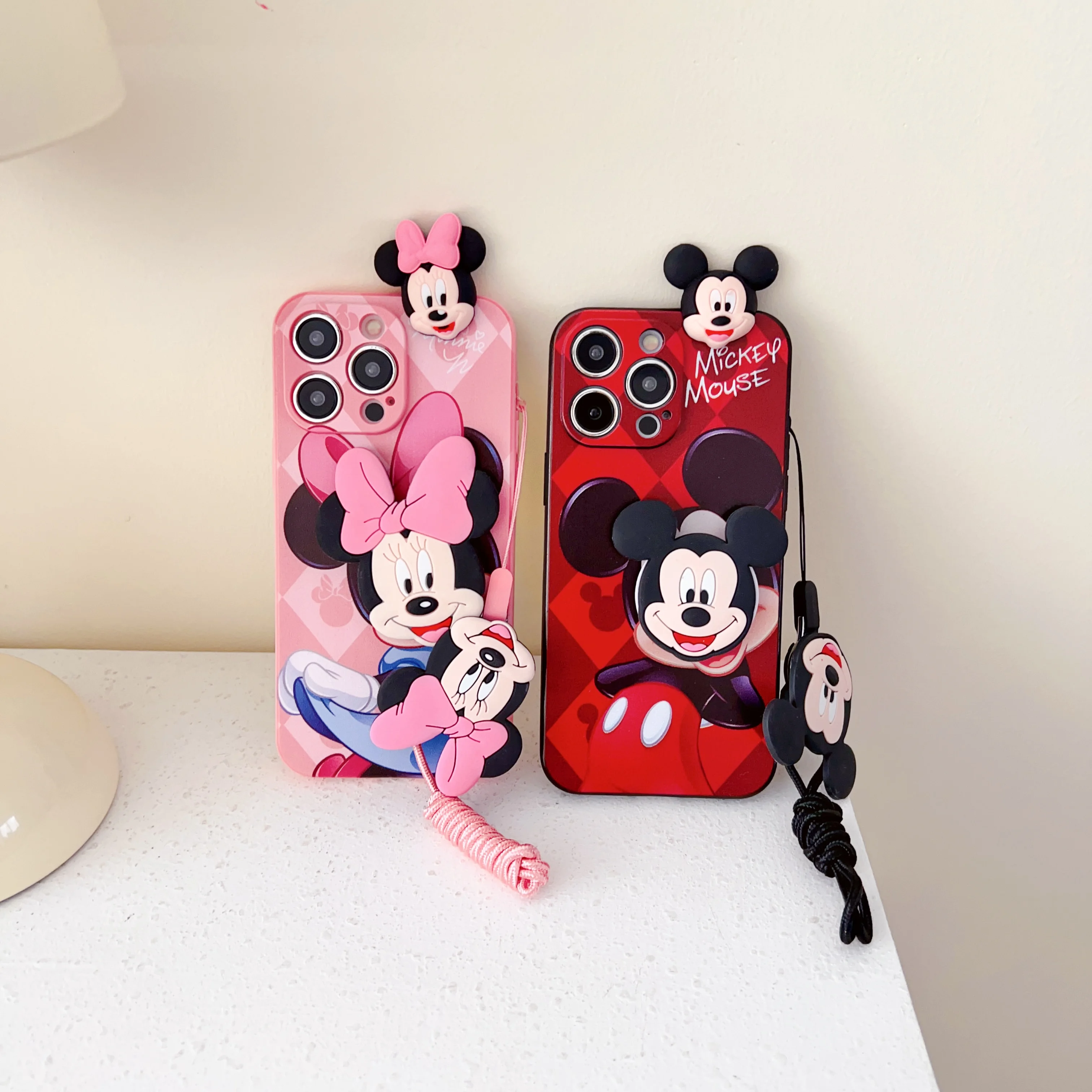 Minnie Mickey Phone Case With Holder Rope For Samsung Galaxy S8 S9 S10 S20 S21 S22 S23 S24 S25 Plus Ultra FE Note 9 10 20