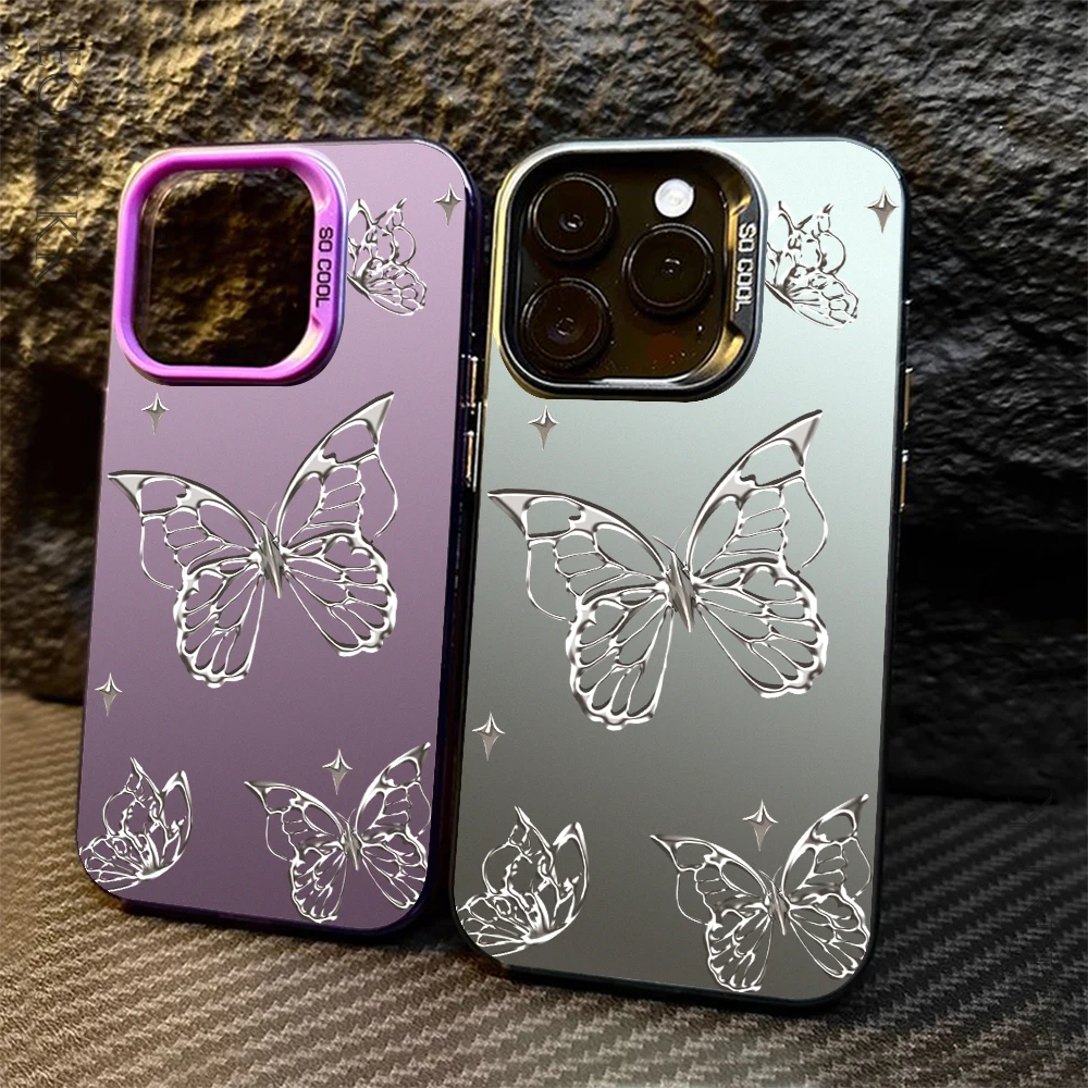 Phone Case For Samsung Galaxy S25 S24 Ultra S23 S22 S21 S20 Ultra Plus FE A25 A35 A55 5G Gold Butterfly Colorful Silver Cover