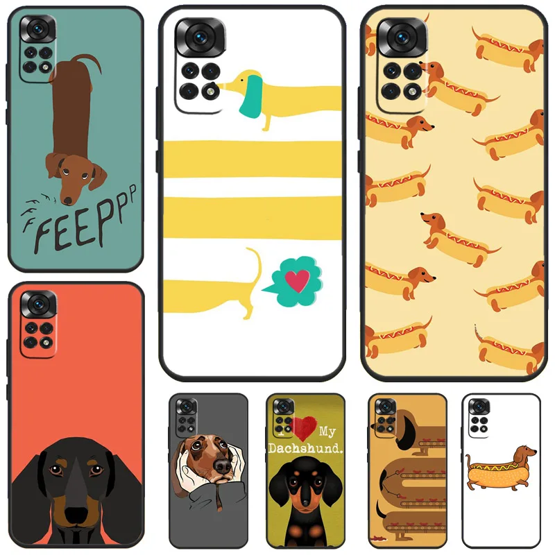 Cartoon Dachshund Sausage Dog Case For Xiaomi Redmi Note 12 11 8 9 10 13 Pro 12S 11S 10S 9S Redmi 13C 9C 10C 12C Cover