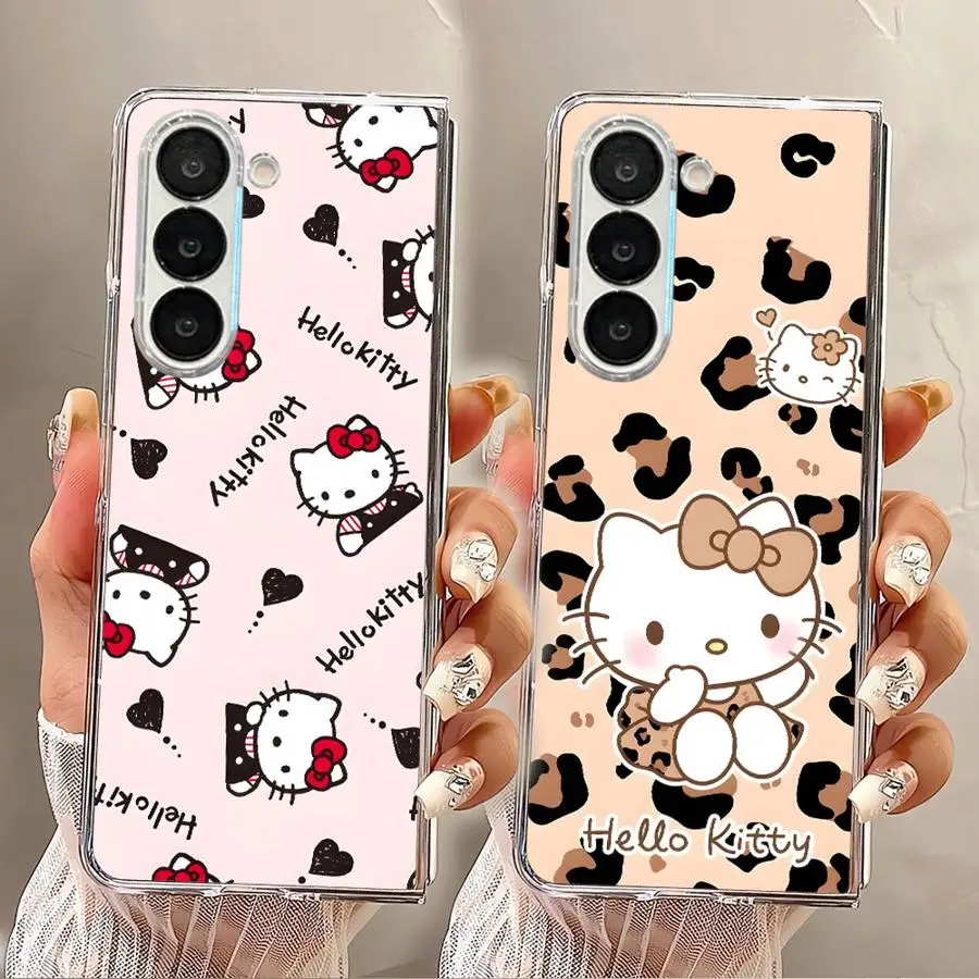 Hard Phone Cover Case for Samsung Galaxy Z Fold 7 6 5 4 3 ZFold5 ZFold6 ZFold3 ZFold4 ZFold7 Sanrio Striped Hello Kitty