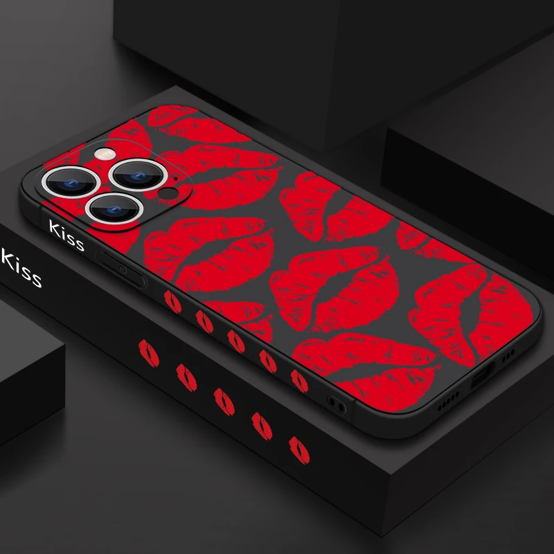 Luxury Red Lips Pattern Phone Case For iPhone 15 Pro Max Coque Multi-Color Silicone Cover For iPhone 14 Pro Max 13 12 11 16 16e  Read more