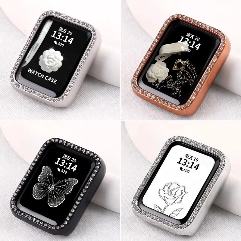 Rhinestone Decor Tempered Glass Screen Protector Watch Case For Apple Watch 38/40/41/42/44/45/46mm, Series SE/11/10/9/8/7/6/5/4/  Read more