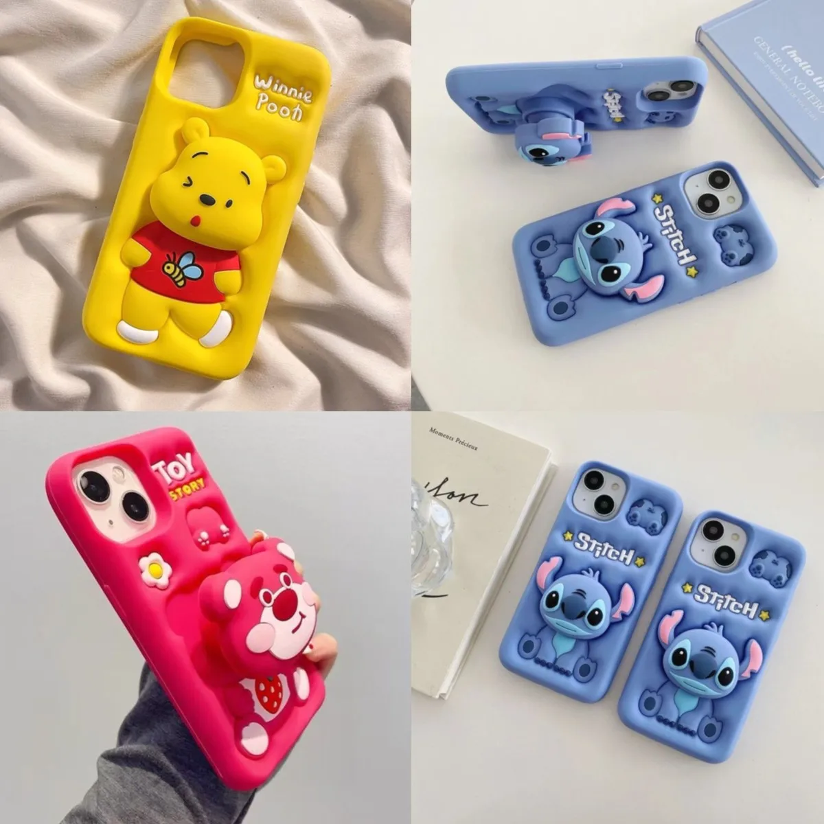 Stitch Head Holder For iPhone 16 15 14 13 12 11 Pro Max Case Soft Silicone Soft Case