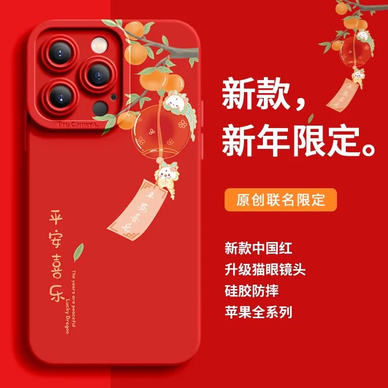Deluxe Case For iphone 15 14 13 12 11 Pro Max X XR Xs New Year Dragons Silicone Advanced Cell Phone Protective Cover