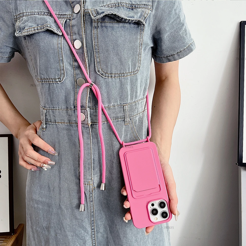 Silicone Phone Case with Lanyard & Shoulder Strap, Wallet Case for iPhone 17 16 15 14 Plus 13 12 11 Pro Max X XS XR