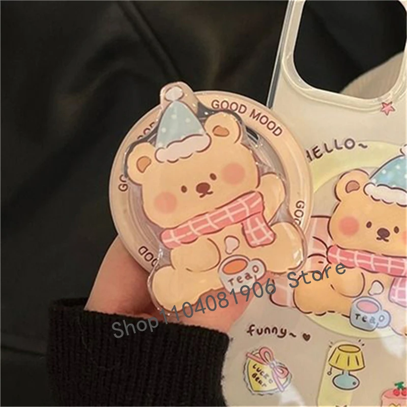 Korean Cute Cartoon Bear Magnetic Holder Phone Stand GripTok Grip Tok Support For iPhone 16 For Magsafe Accessories Phone Holder