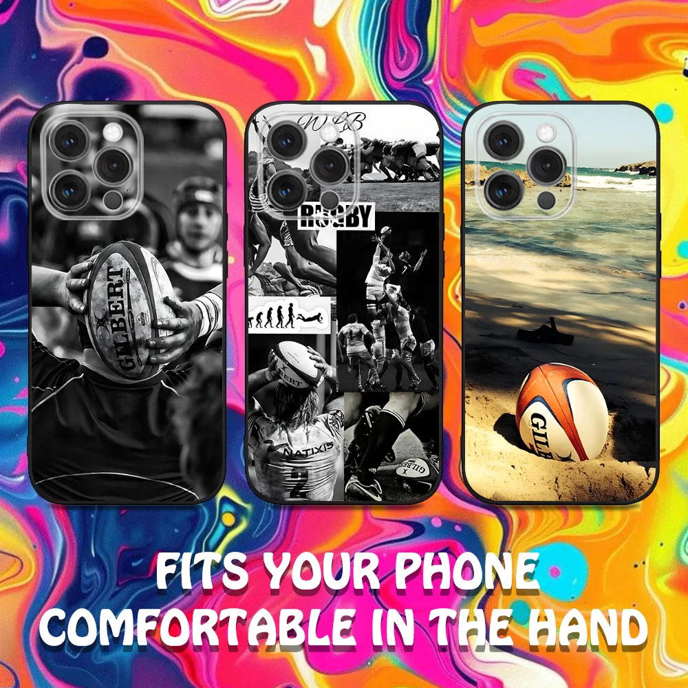 Rugby Sport Phone Case For iPhone 16, 15, 14, 13, 12, 11, Pro, Max, Plus, X, XS, XR, SE, 8, 7, Mini, Soft Silicone Black Case