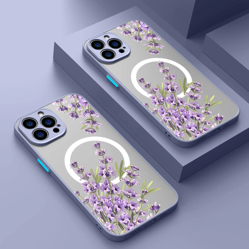 Magnetic Purple Flower Phone Case For iPhone 17 16 15 14 Pro Max 13 12 Pro Air 11 For Magsafe Wireless Charge Soft Edge PC Cover