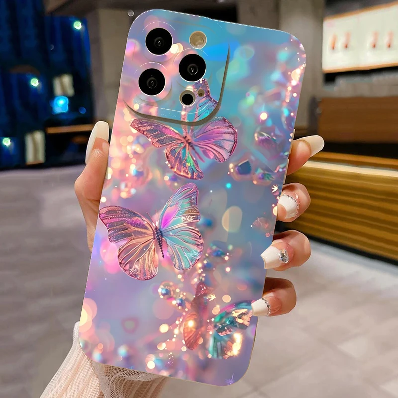 Plating Heart Laser Aurora Matte Case For iPhone 17 11 12 13 14 15 16 Pro Max Plus Camera Protection Silicone Shockproof Cover