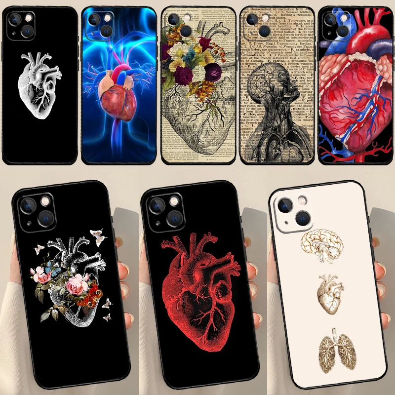 Medical Human Organs Heart Art Case For iPhone 16 13 12 14 15 Pro Max Mini Plus X XS MAX XR 11 14 15 Pro Max Cover Case