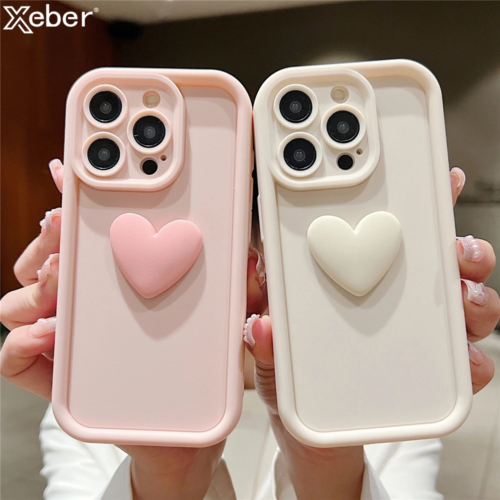 Cute 3D Love Heart Soft Liquid Silicone Case For iPhone 16 15 11 12 13 14 Pro Max XR X Plus Candy Color Bumper Shockproof Cover
