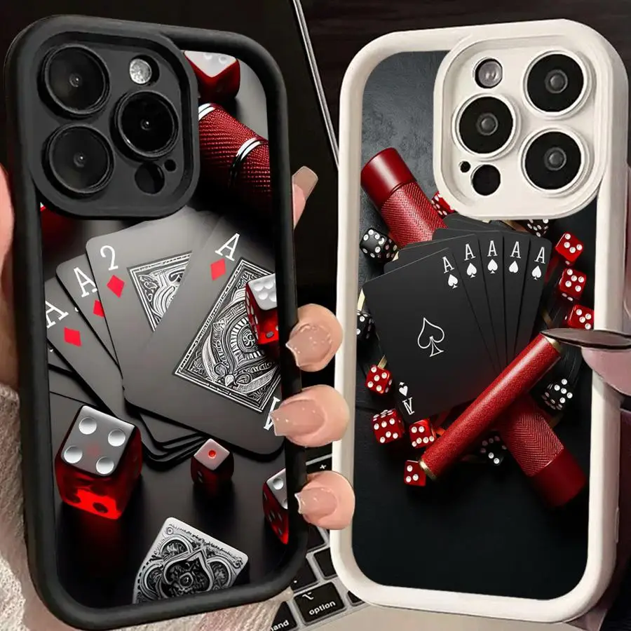 Phone Case for iPhone 16 15 Pro Max 13 12 11 Pro 14ProMax 16Plus 12Pro 16e 13Pro Soft Cover Shell Poker Cards And Dice