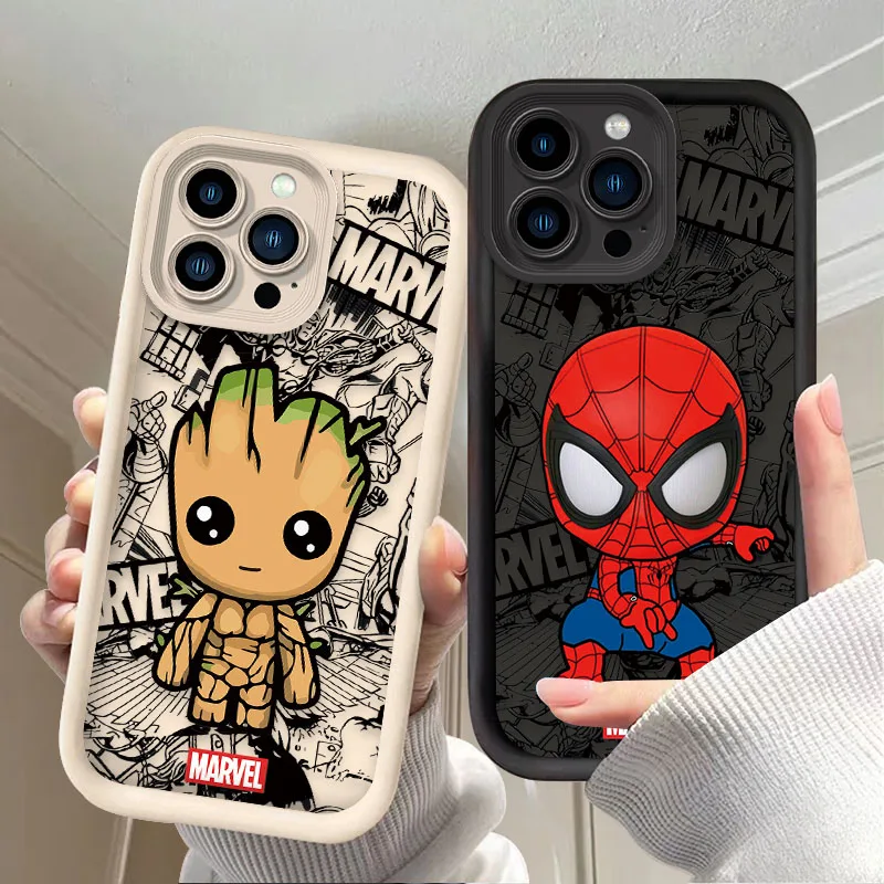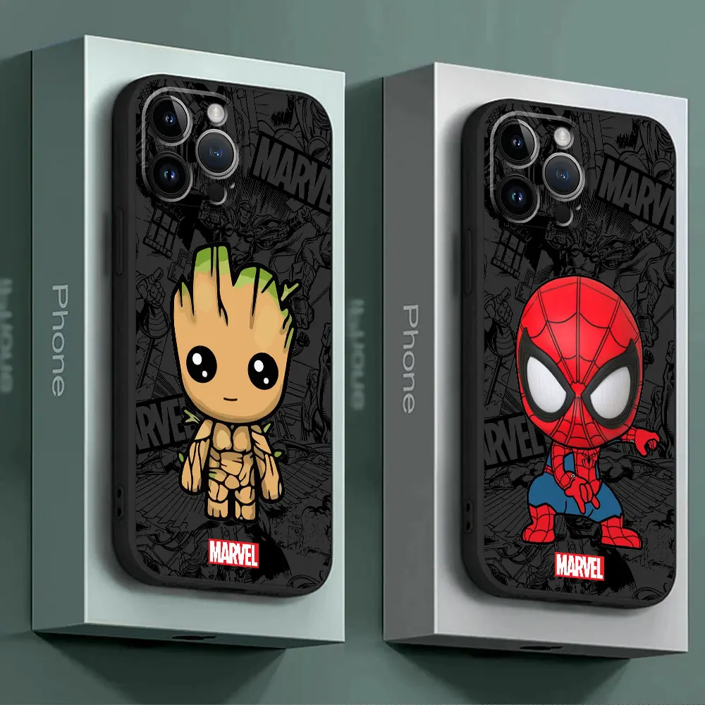 Cartoon Marvel Spiderman Groot Soft Phone Case For iPhone 16 16E 15 14 13 12 11 Pro Max X XS X S Max XR SE 2020 SE4 7 8 Cover