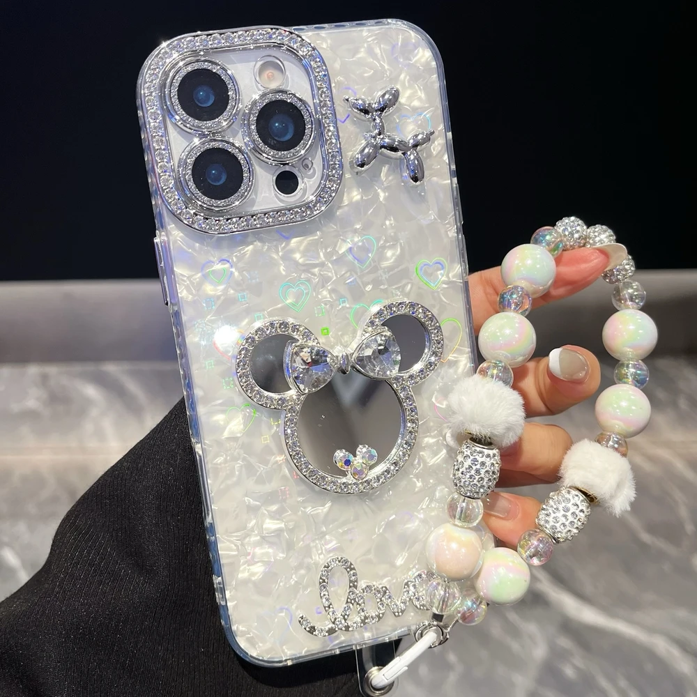 3D Cute Disney Mickey Minnie Mouse Makeup Mirror Glitter Phone Case For iPhone 16 15 14 13 12 11 Pro Max Shockproof Hard Cover