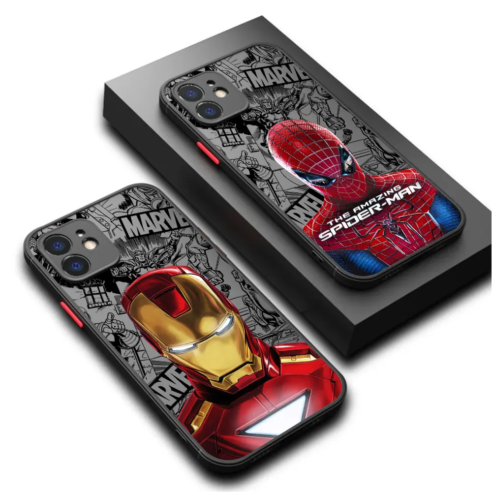 Phone Case for iPhone 7 6S XS X 11 Pro XR 13 14 Pro Max SE 15 Pro 12 Mini 8 Plus Marvel Avengers Spiderman Ironman Cover