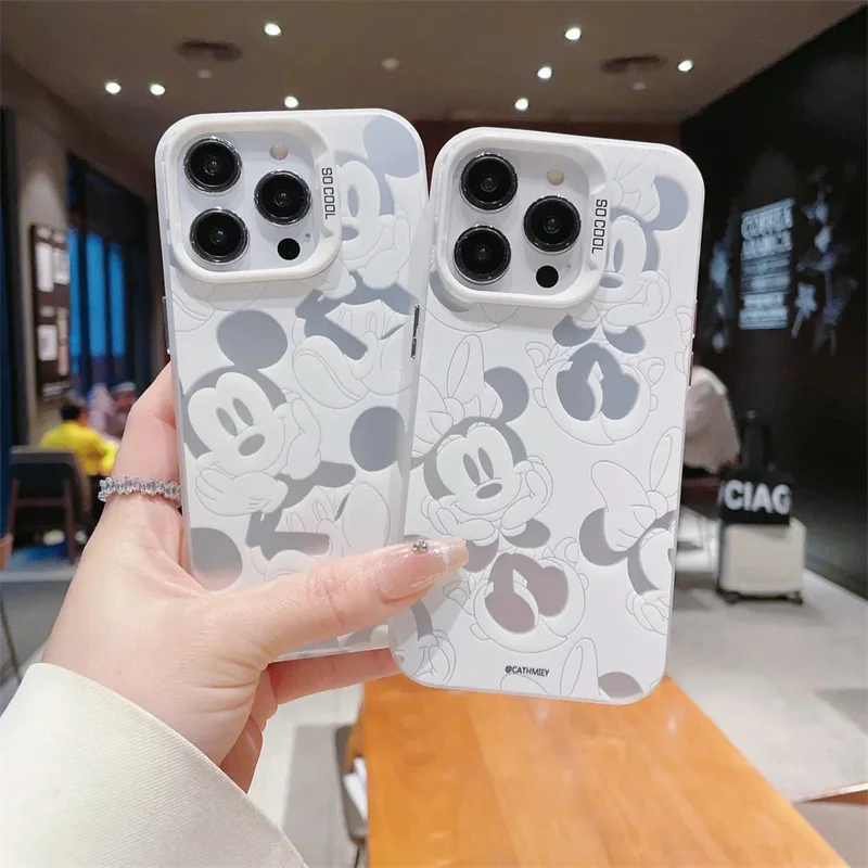Cute Cattoon Mickey Minnie Mouse White Phone Case For iPhone 17 16 15 14 12 13 11 Pro Max XR XS 7 8 PLUS MINI Y2K Lovely Cover
