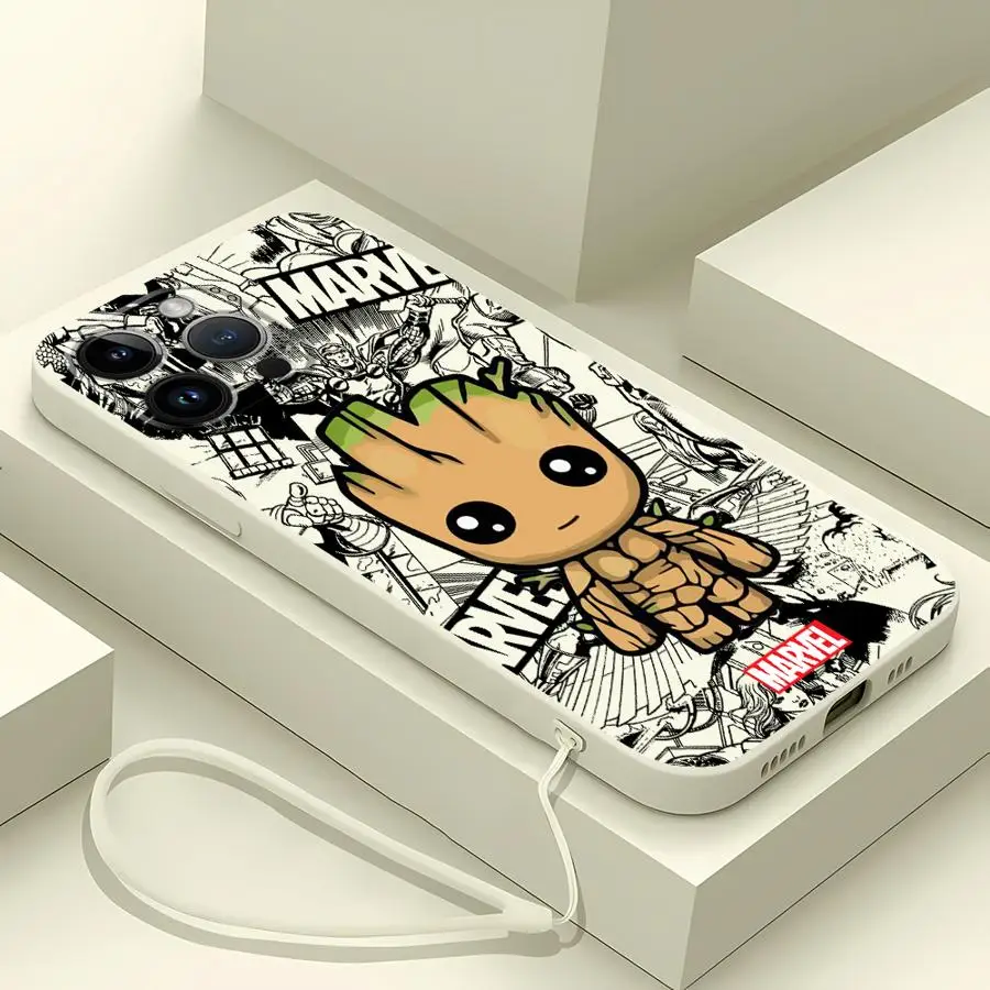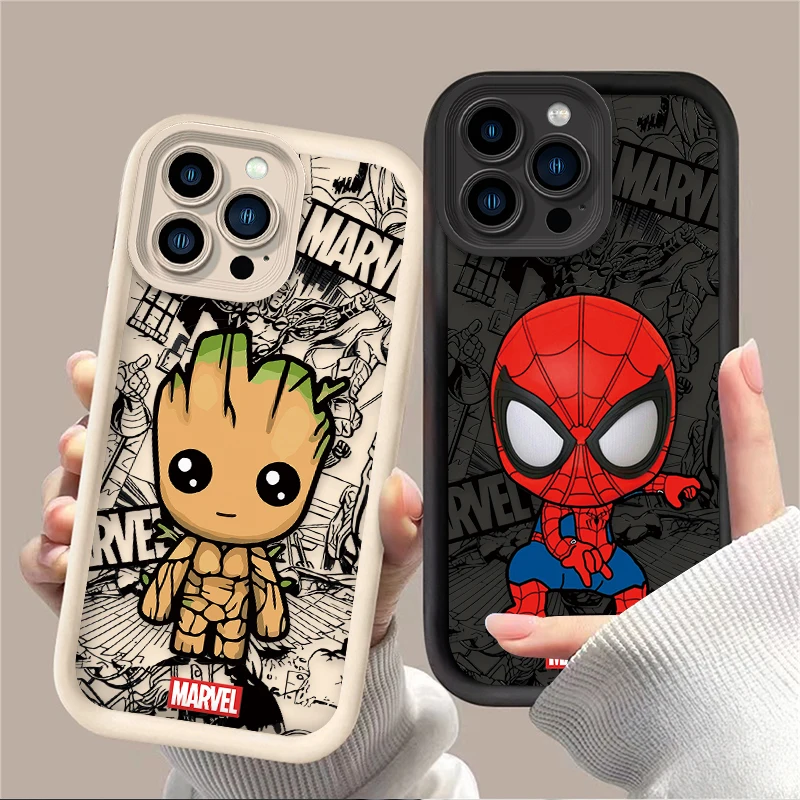 Marvel Groot Spiderman Soft Phone Case for IPhone 16 16E 15 14 13 12 11 Pro Max X XS X S Max XR SE 2020 SE4 7 8 Shockproof Cover