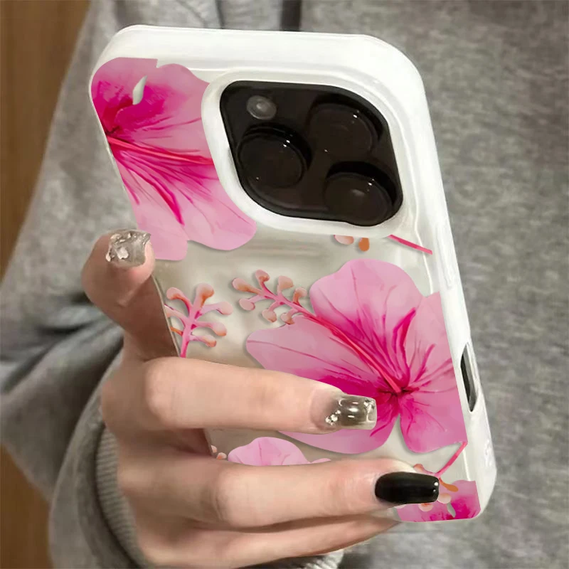 Minimalist Fashion Pink Flower Folds Texture Soft TPU Case For iPhone 16 15 14 13 12 17 Pro Max Plus 17 Air Shockproof Cover  Read more