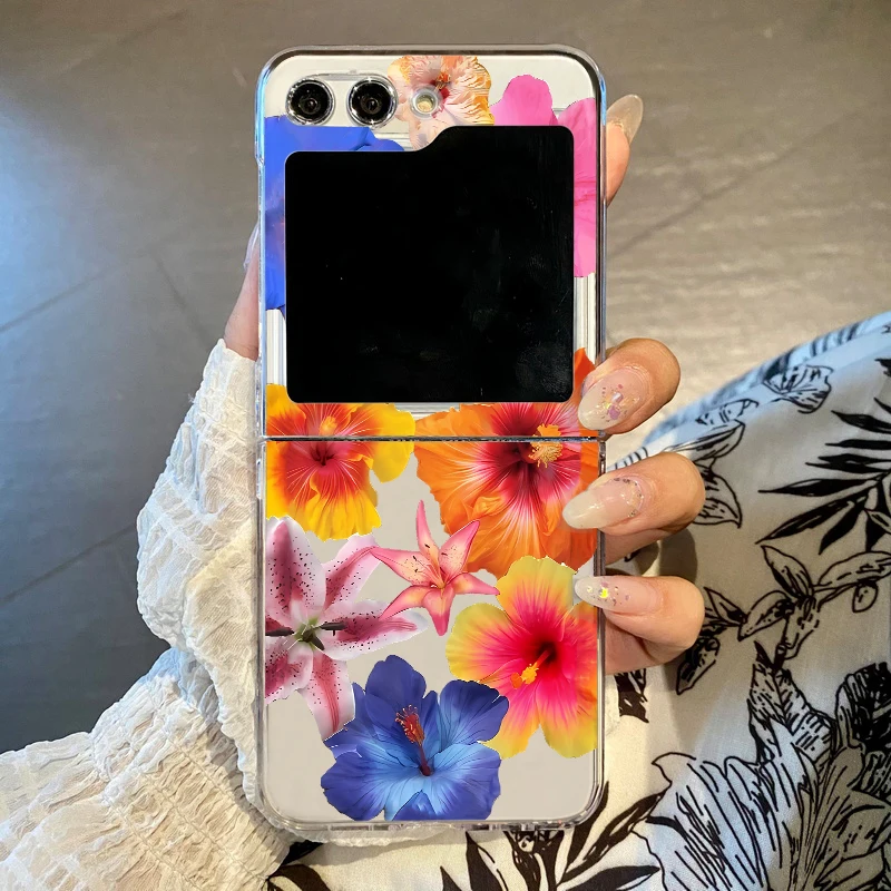 Realistic Floral Print Phone Case For Samsung Galaxy Z Flip7 FE Flip6 Flip5 Clear Folding Cover For Samsung Z Flip 3 4 5 6 7 5G
