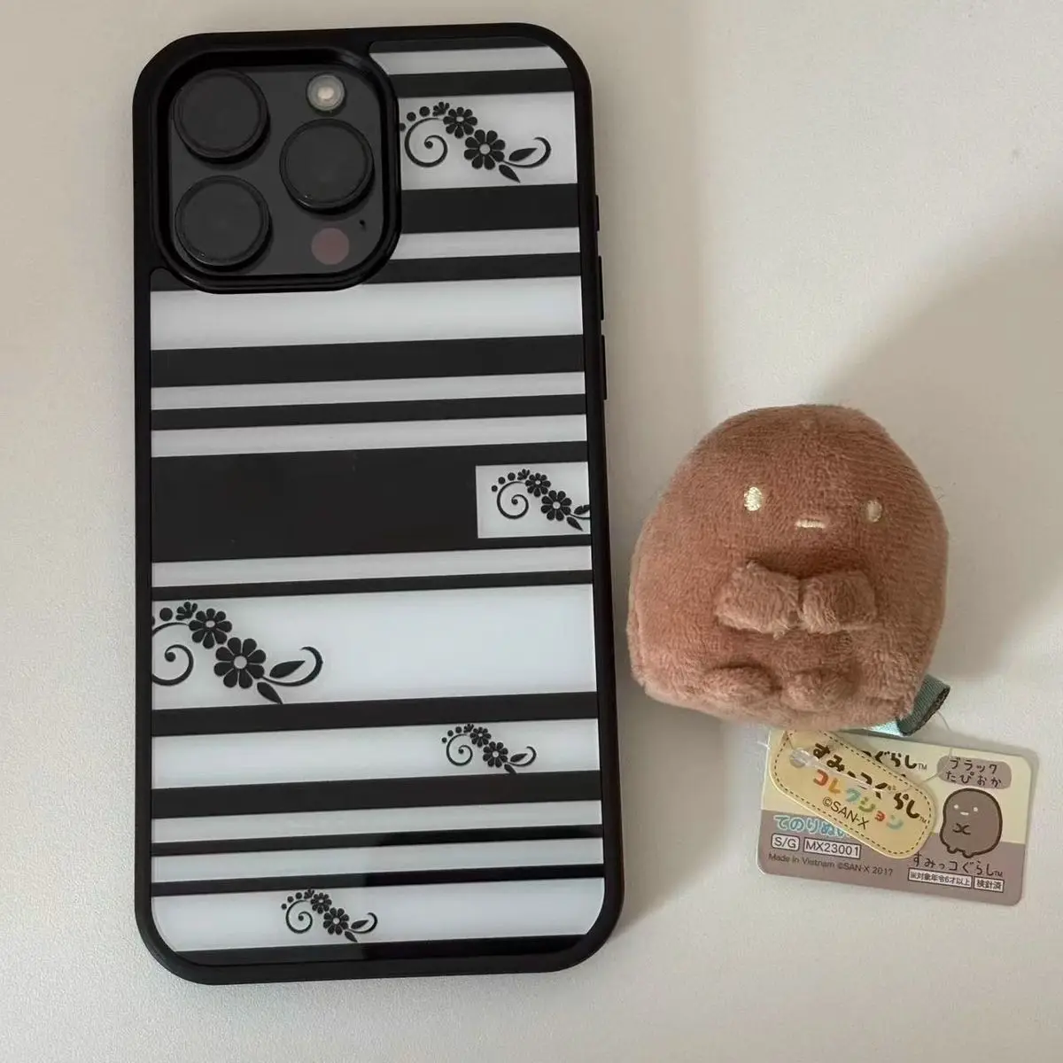 Korean Ins Premium Black White Striped Flower Phone Case For iPhone 16 15 14 13 12 11 Pro Max MIni Xr X XsMax 7 8 Plus Y2K Cover
