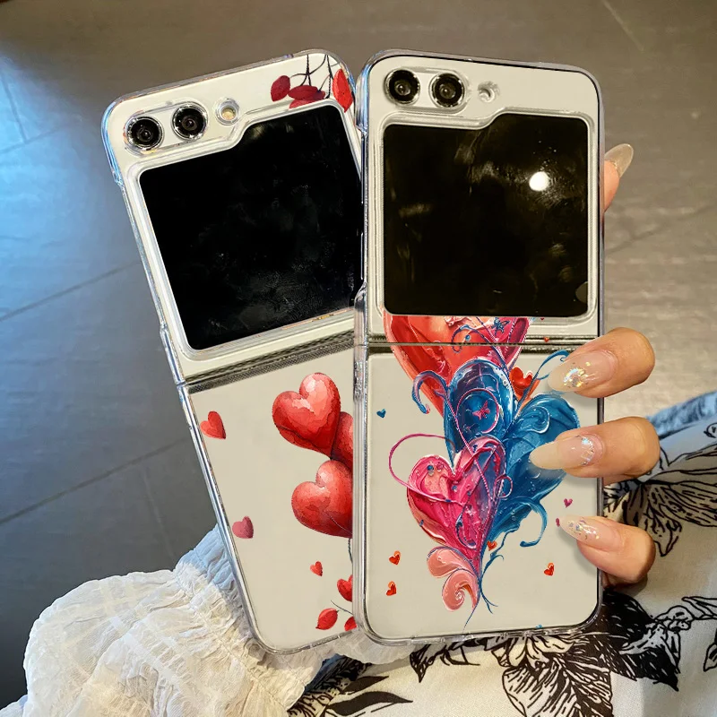 Shockproof Love Heart Printed Folding Case For Samsung Galaxy Z Flip6 Flip5 Flip4 Clear Hard Cover For Samsung Z Flip 6 5 4 3 5G