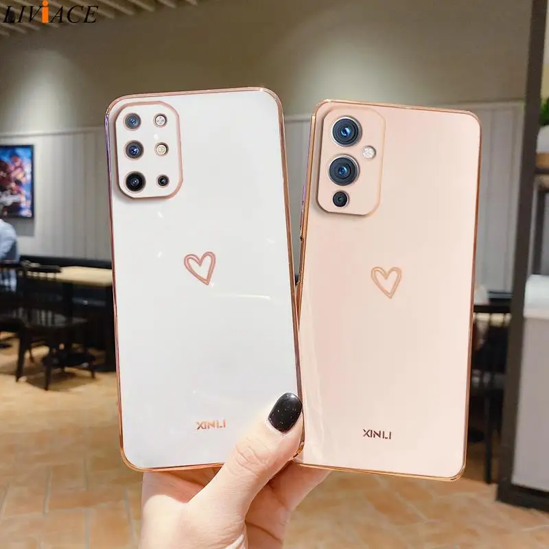 Luxury Plating Love Heart Phone Case On For Oneplus 8T 9 10 ACE Pro 9R 9RT 5G Oneplus8t Oneplus9 Oneplus10 Luxury Fundas Cover