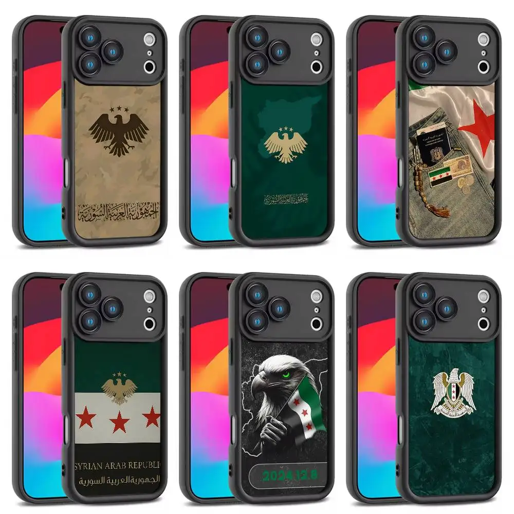 Syria Syrian Flag National Emblem LOGO Phone Case For iPhone 17, 16, 15, 14, 13, 12, Pro, Max, Plus, E, SE4, Air, Mini Black Full Coverage