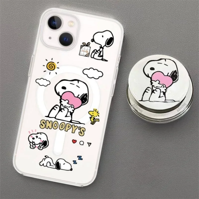 Cute Cartoon Snoopy Magnetic Holder Magsafe Wireless Charge Transparent Phone Case for IPhone 16 15 14 12 11 Pro Max 13 Mini Y2K  Read more