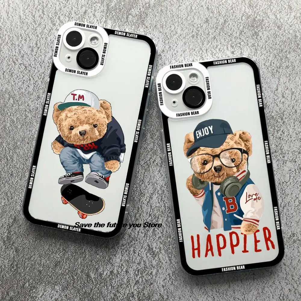 Fashion Sports Bear Angel Eyes Phone Case For iPhone 17 16 15 14 13 12 11 Pro Max 17AIR 16Plus Cute Clear Soft Silicone Cover