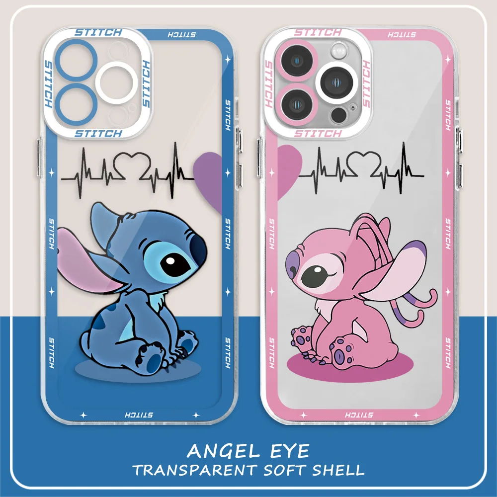 Disney Stitch Cartoon Phone Case for Apple iPhone 13 14 16 Pro Max XS SE XR 15 11 Pro 12 Mini X 8 Plus Transparent Soft Cover