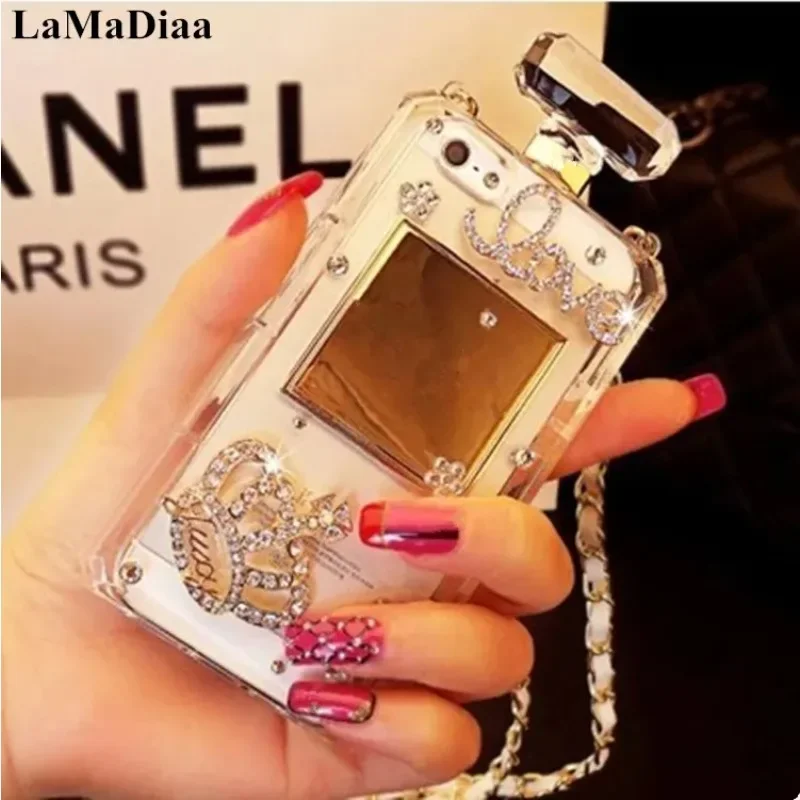 Luxury Glitter Bling Diamond Crown Perfume Bottle Lanyard Chain, Phone Case for Samsung S24, S21, S22, S23 Ultra, Note 20, 8, 9