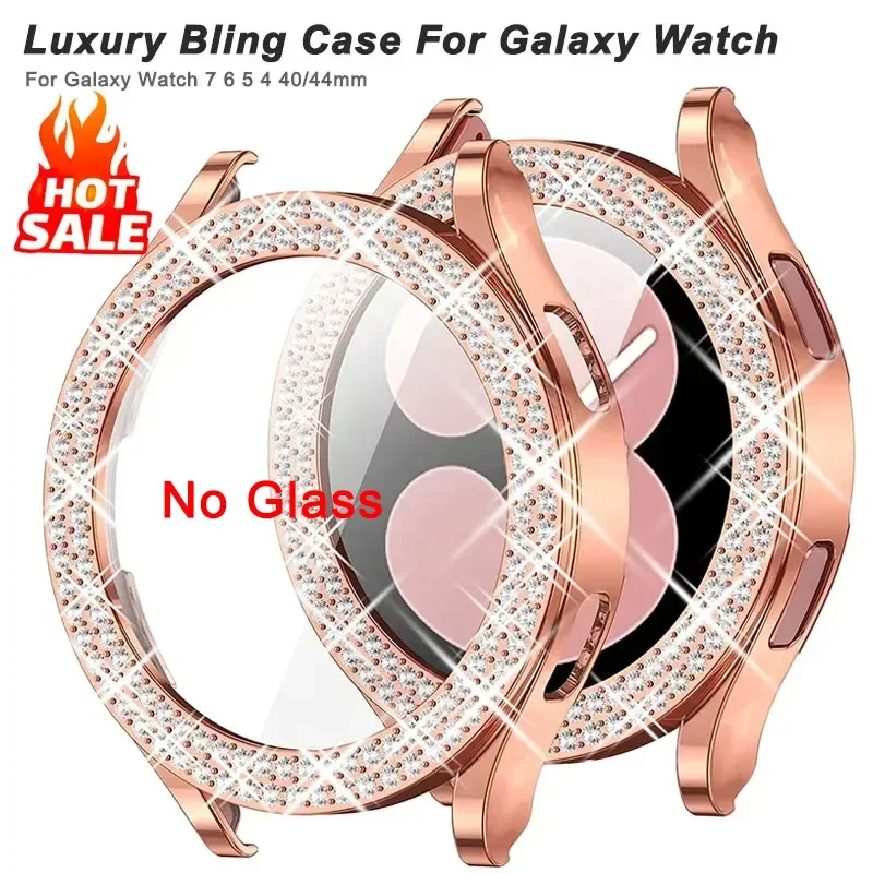 Bling Diamond Case for Samsung Galaxy Watch 7 6 5 4 PC Protective Case 40mm 44mm Screen Protector bumper Transparent Cover