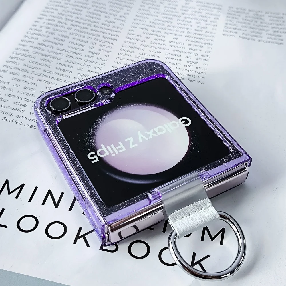 Glitter for Magsafe Ring Holder Case for Samsung Galaxy Z Flip 7 6 5 4 3 flip7 ZFlip Magnetic Bling Transparent Shockproof Cover