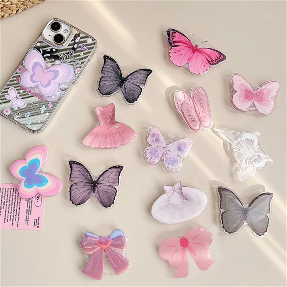 Cute Butterfly Phone Grip Tok Griptok Holder Ring For iPhone 16 Universal Accessories Lovely Bowknot Phone Stand Bracket Socket