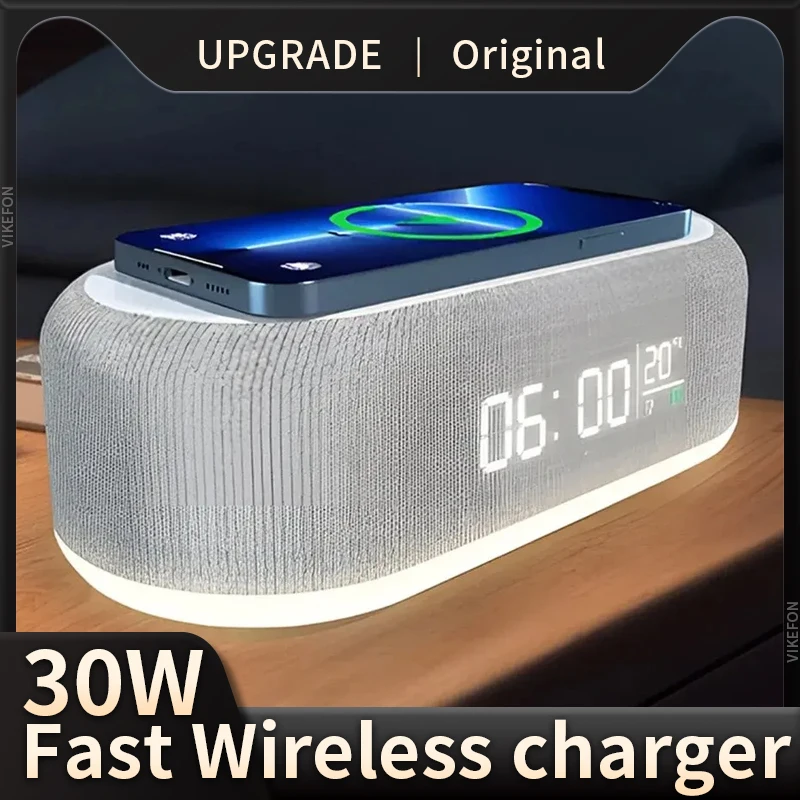 30W Wireless Chargers Pad Stand Phone Fast Charging Dock Alarm Bedroom Lamp Night Light Desktop Clock Temperature Thermometer