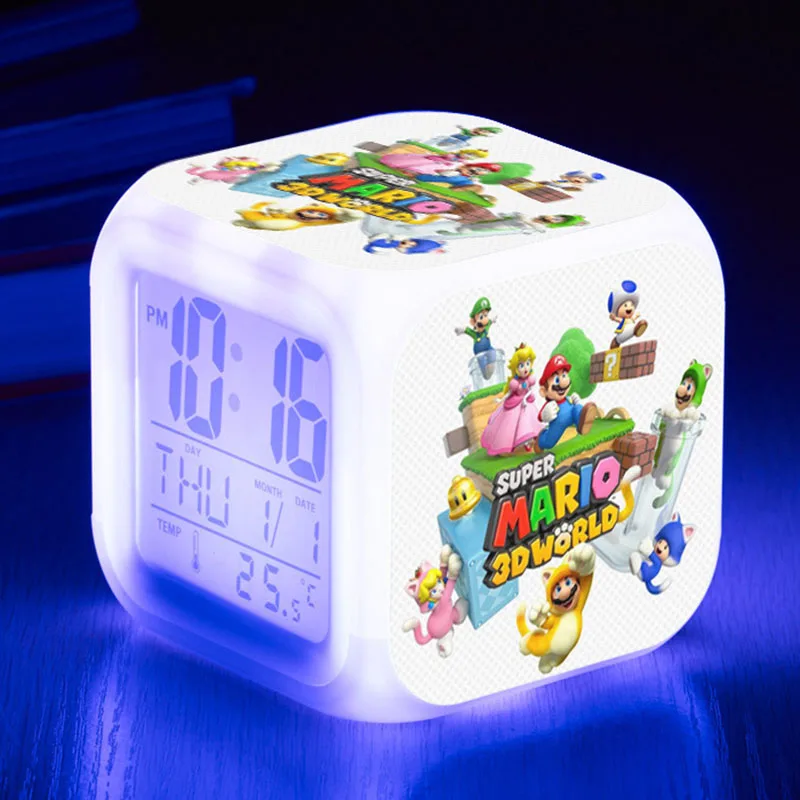 Cute Super Mario Luigi LED Color Changing Alarm Clock Electronic Clock Luminous Digital Glowing Decoration Fashion Toy Kids Gift