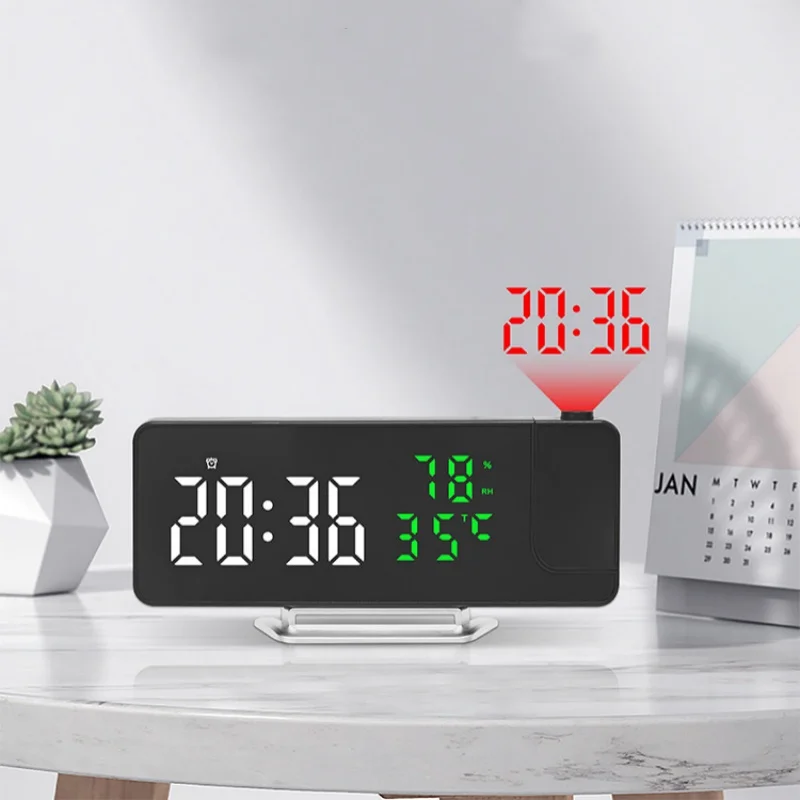 180° Rotation Digital Projection Alarm Clock TEMP Humidity Date Night Mode Snooze Table Clock 12/24H ℃/℉ USB Powered LED Clock