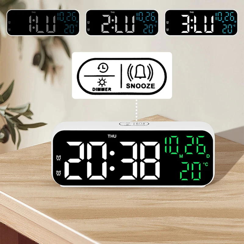 9 Inch Voice Control Digital Alarm Clock Date Time Temperature Display Countdown Dual Alarms 12/24H Electronic LED Alarm Clocks