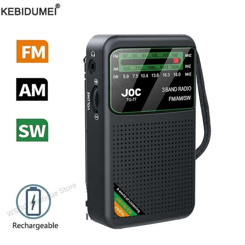 Mini Portable Pocket Radio AM FM AAA USB-C Power 800mAh rechargeable battery Excellent Reception Clear Speaker Headphone Jack