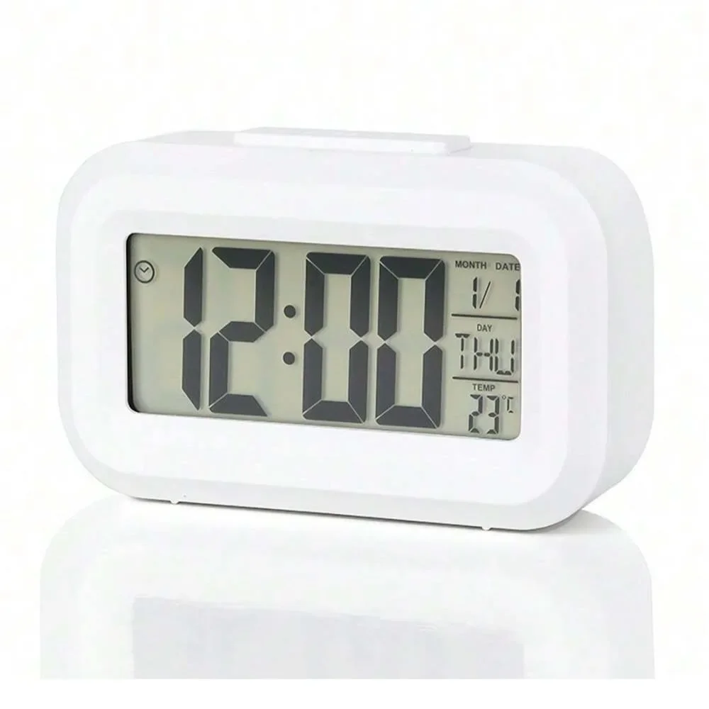 Smart Digital Alarm Clock Black White LCD Display with Temperature Calendar Timer Led Light for Bedroom Office (Without Battery)