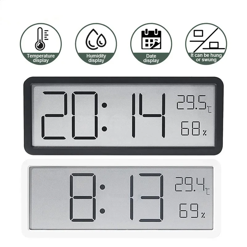 LCD Screen Digital Wall Clock Time Temperature Humidity Time Display Electronic Clock Desktop Digital Clock Battery Powered