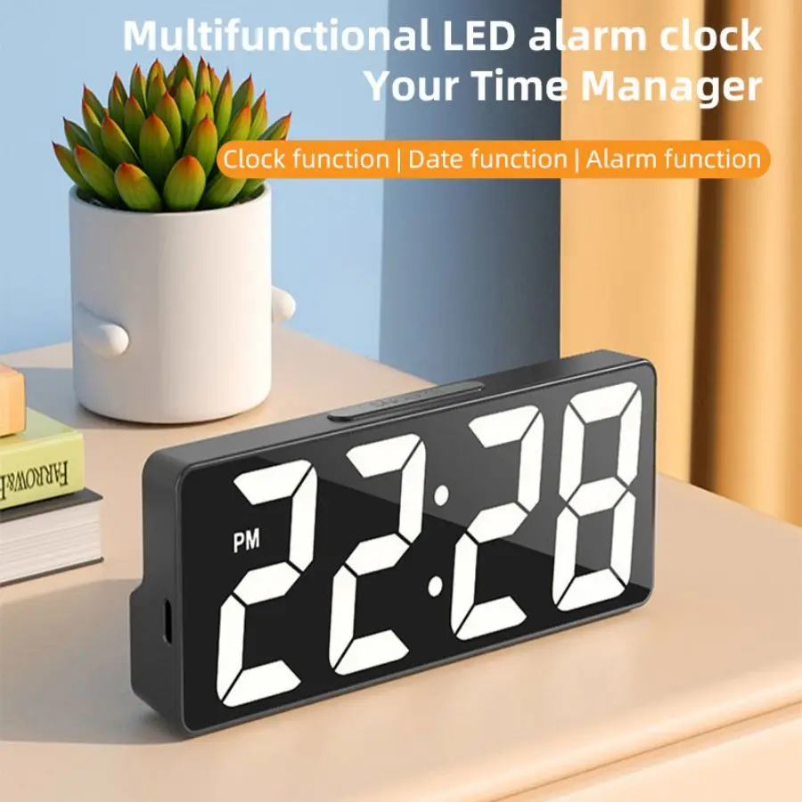 Digital Alarm Clock LED Clock Minimalist Style Large Letter Alarm Clock Temperature Display Adjustable Brightness  Read more
