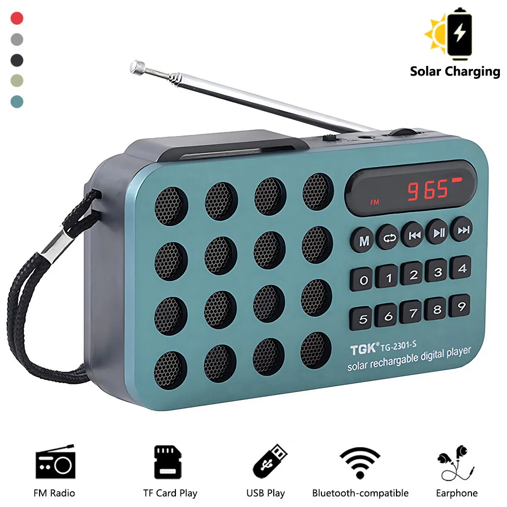 Rechargeable Portable FM Radio Mini Solar Bluetooth Wireless Speaker Support USB TF Card MP3 Music Player with FM Radio Receiver