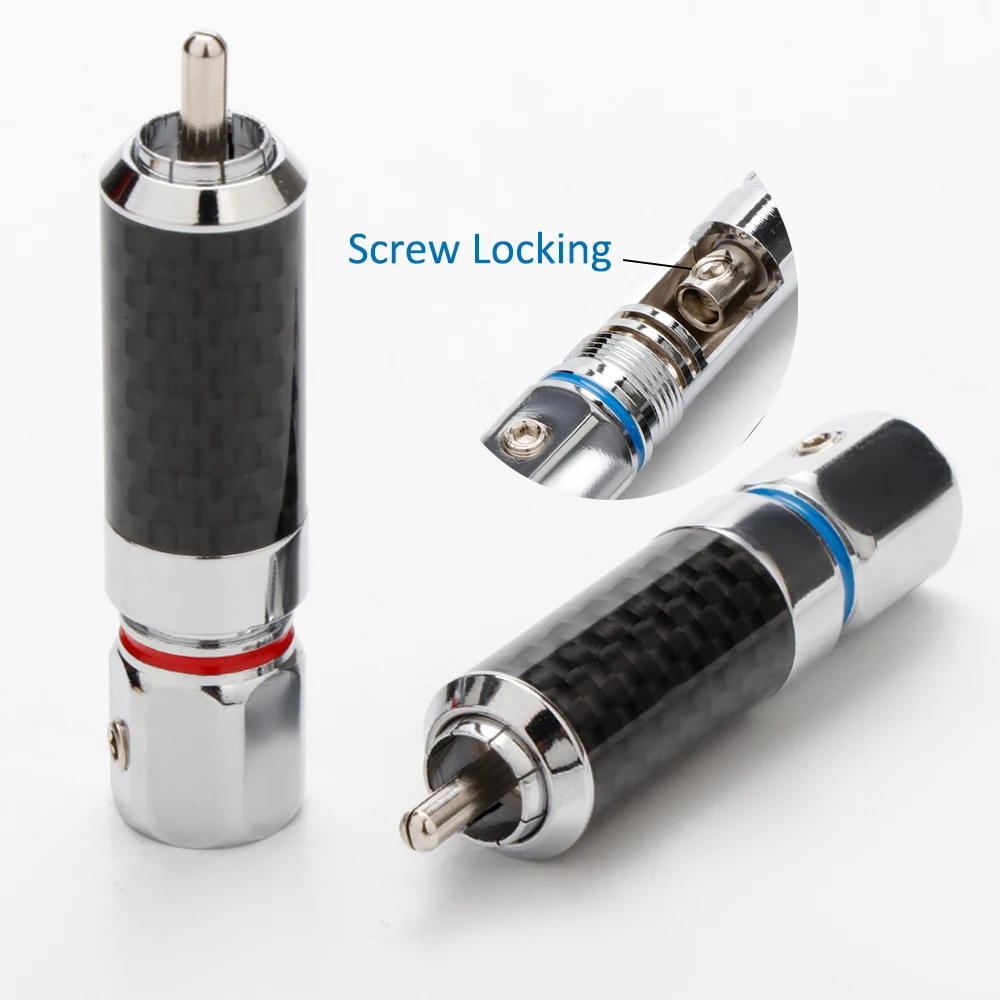 hifi Rhodium RCA Connector Audio Jack, Carbon Fiber Shell Speaker Terminal, Male Solder Plug, Screw locking No solder